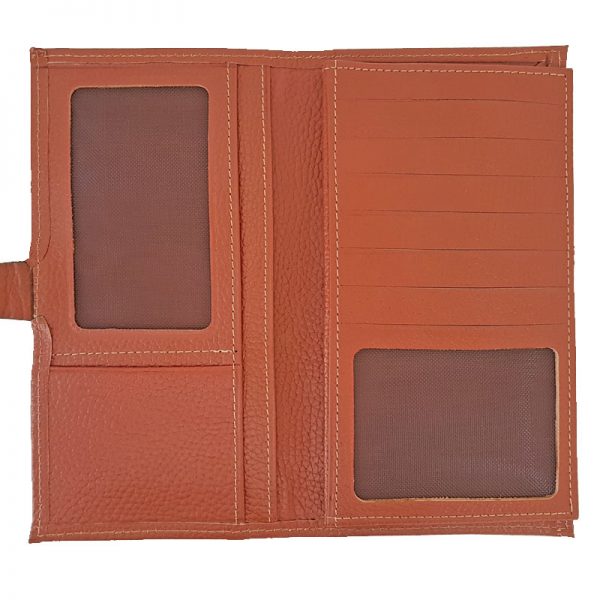 این مدل کیف چرم به دلیل سایز و اندازه یک محل مخصوص قرار دادن دسته چک (سایز کوچک) برای آن تعبیه شده است و همچنین این کیف دارای ۱۴ محفظه مخصوص جهت قرار دادن کارت اعتباری می باشد که شما را از استفاده از جاکارتی مجزا جهت نگهداری کارت های اعتباری و کارت ویزیت بی نیاز می کند . این مدل کیف همچنین دارای سه آلبوم عکس با کاور توری سوزنی می باشد و همچنین دارای ۴ عدد جیب سایز بزرگ جهت قرار دادن انواع اسکناس و سایر مدارک می باشد و همچنین یک جیب جهت قرار دادن سکه و … در داخل کیف تعبیه شده است.